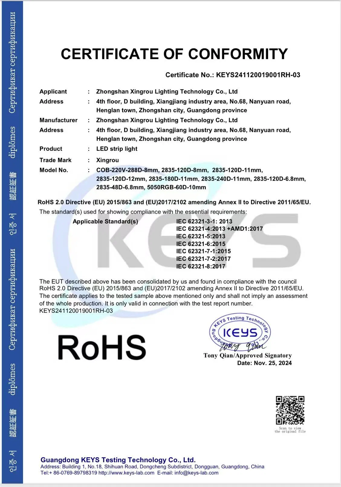 | Certificate | CE, Rohs |