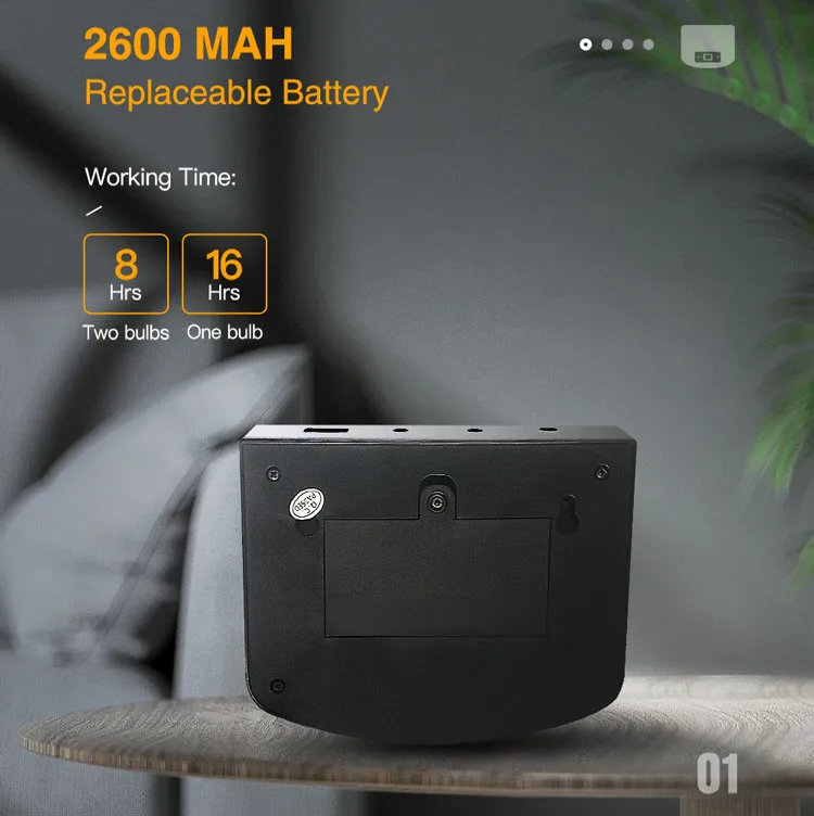 | Working Time | 16 hours (1 Lamp); 8 hours (2 Lamps) |